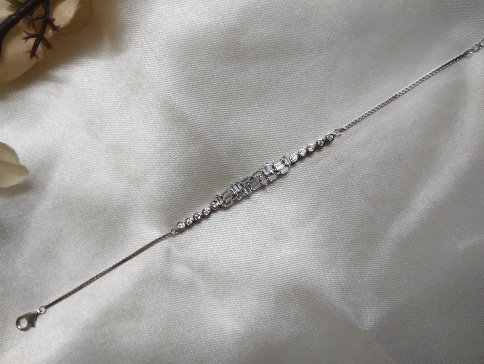 Expertly crafted with 925 silver, the Baguette Brilliance Bracelet features a stunning combination of round and baguette shaped zirconia. With its elegant design, this bracelet adds a touch of sophistication to any outfit.