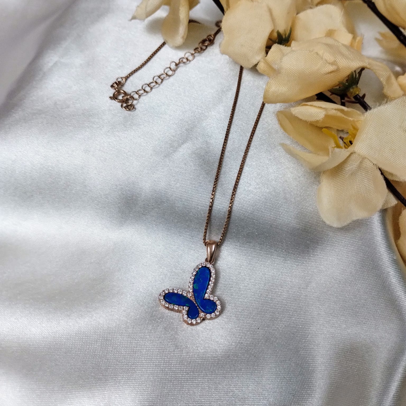 A Butterfly themed design, this zircon studded pendant comes complete with a matching chain, allowing you to wear it in style.