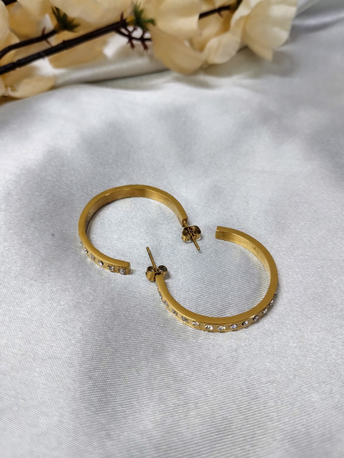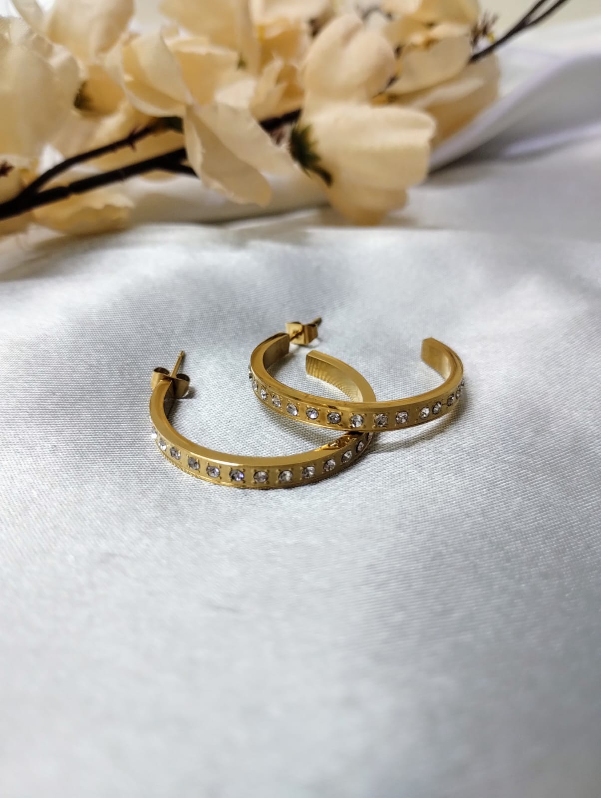 Expertly crafted with stainless steel and gold plating, our Classic Hoops Earrings are a timeless addition to any wardrobe. These earrings are waterproof, anti-tarnish, and hypoallergenic, making them suitable for all-day wear. Each earring is studded with sparkling crystals for a touch of elegance.