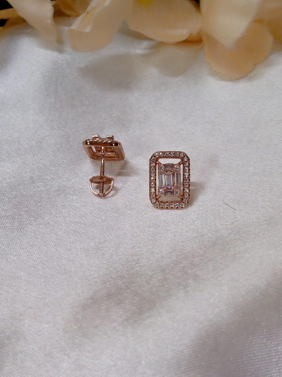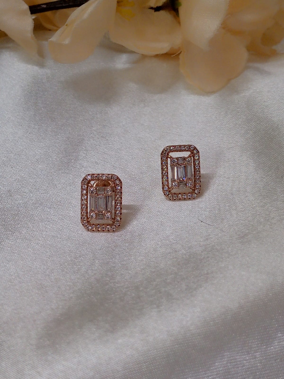 Made with high-quality rose gold and adorned with dazzling zircon stones, these studs effortlessly combine elegance and sophistication.