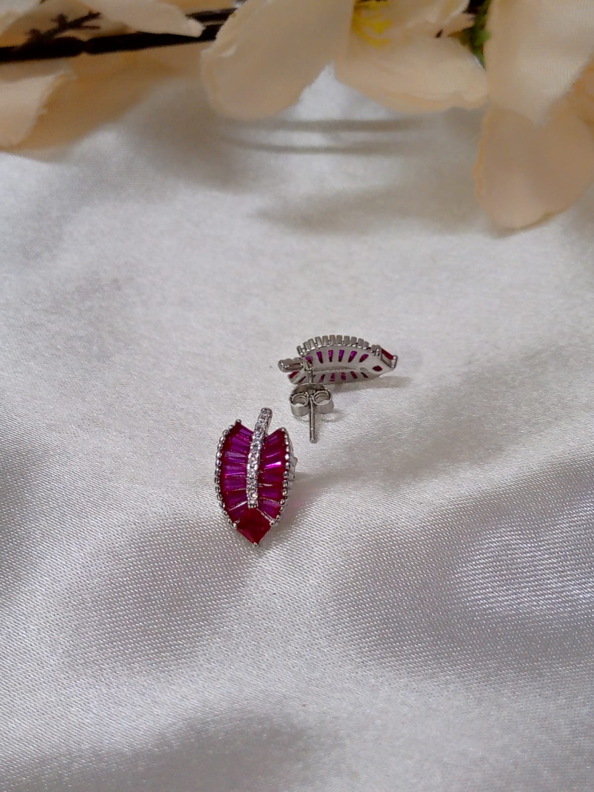 These Leafy Grace Earrings are expertly crafted from 925 silver and adorned with beautiful pink zircon stones. The unique leaf shape adds a touch of elegance to any outfit.