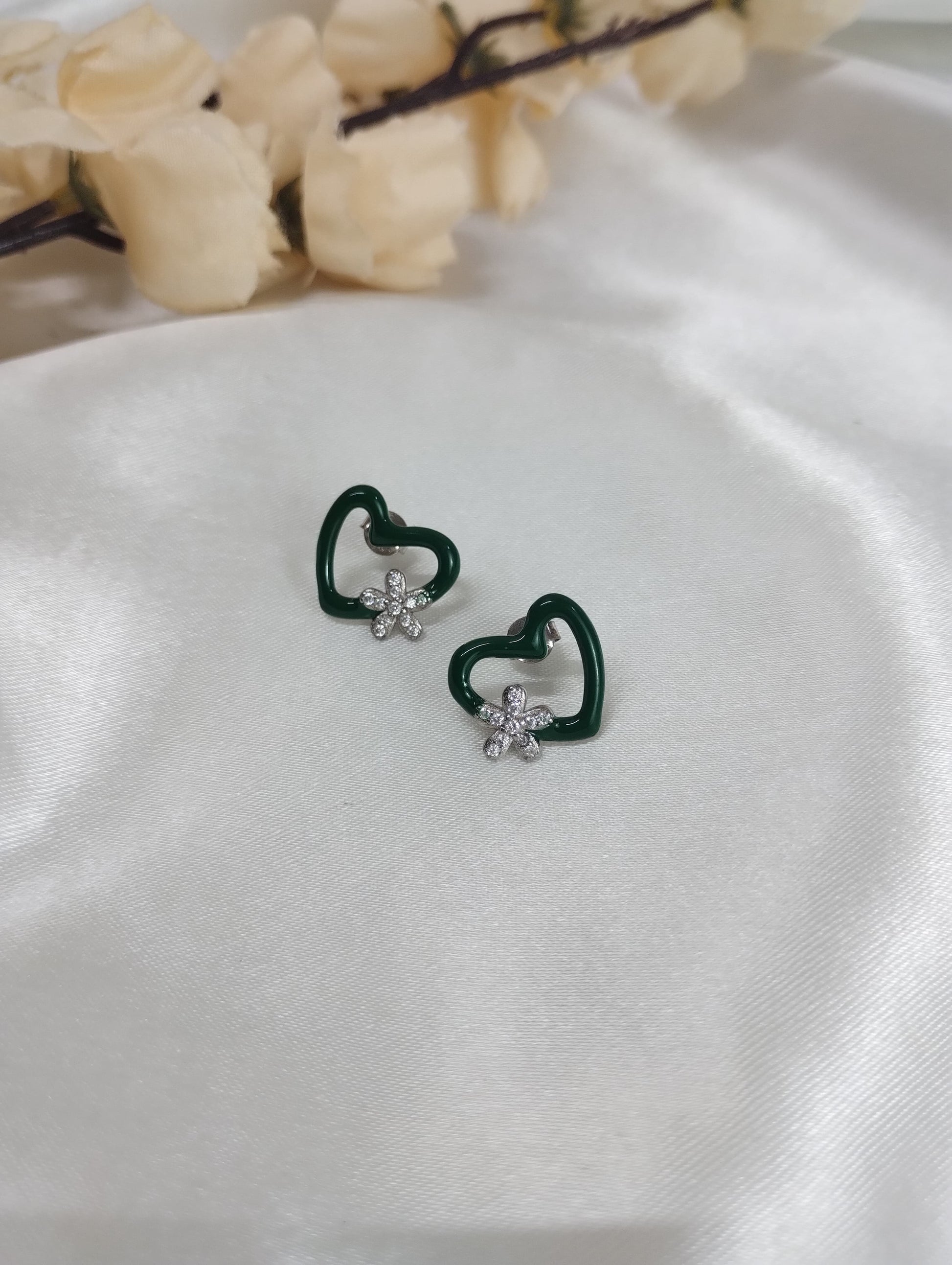 Crafted from 925 silver, these Little Hearts Earrings feature a delicate heart shape design in a stunning green color. Adorned with a small zircon flower, these earrings add a touch of elegance to any outfit.