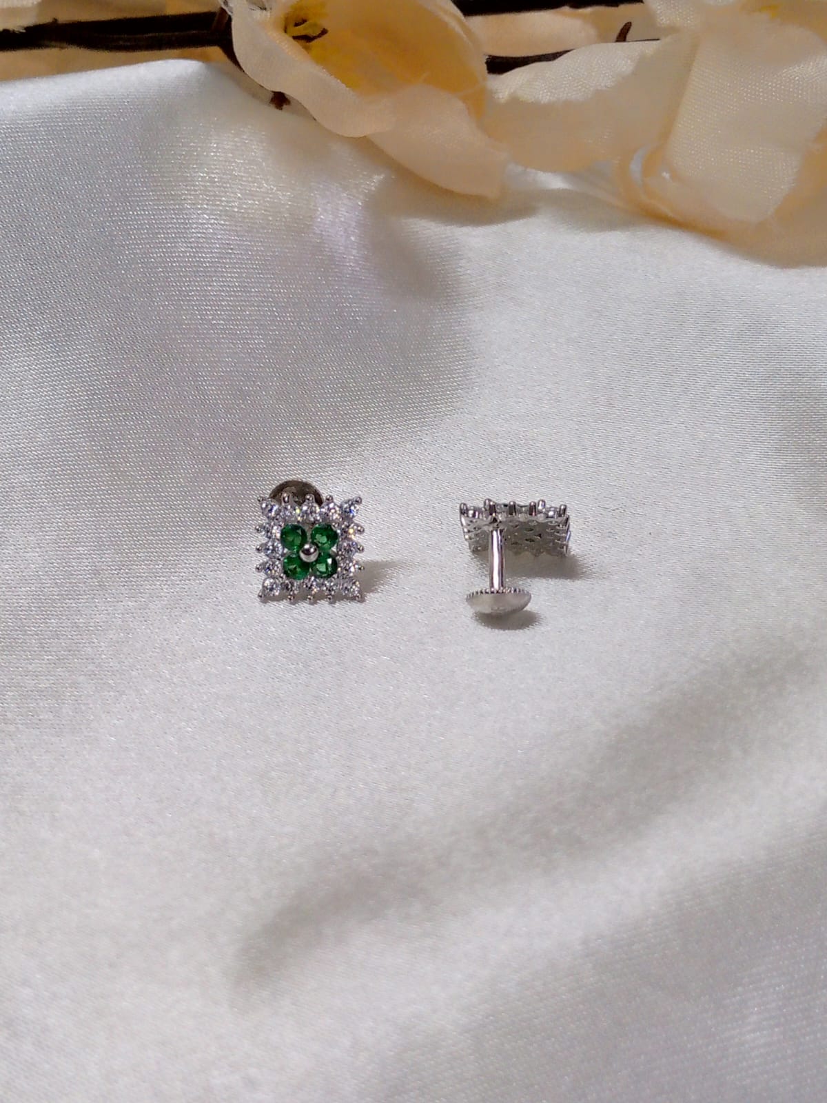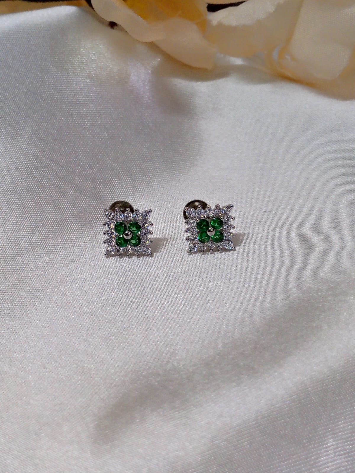 Crafted from high-quality 925 silver, the Lume Earrings feature dazzling zircon stones and a center square studded with vibrant green zircon.