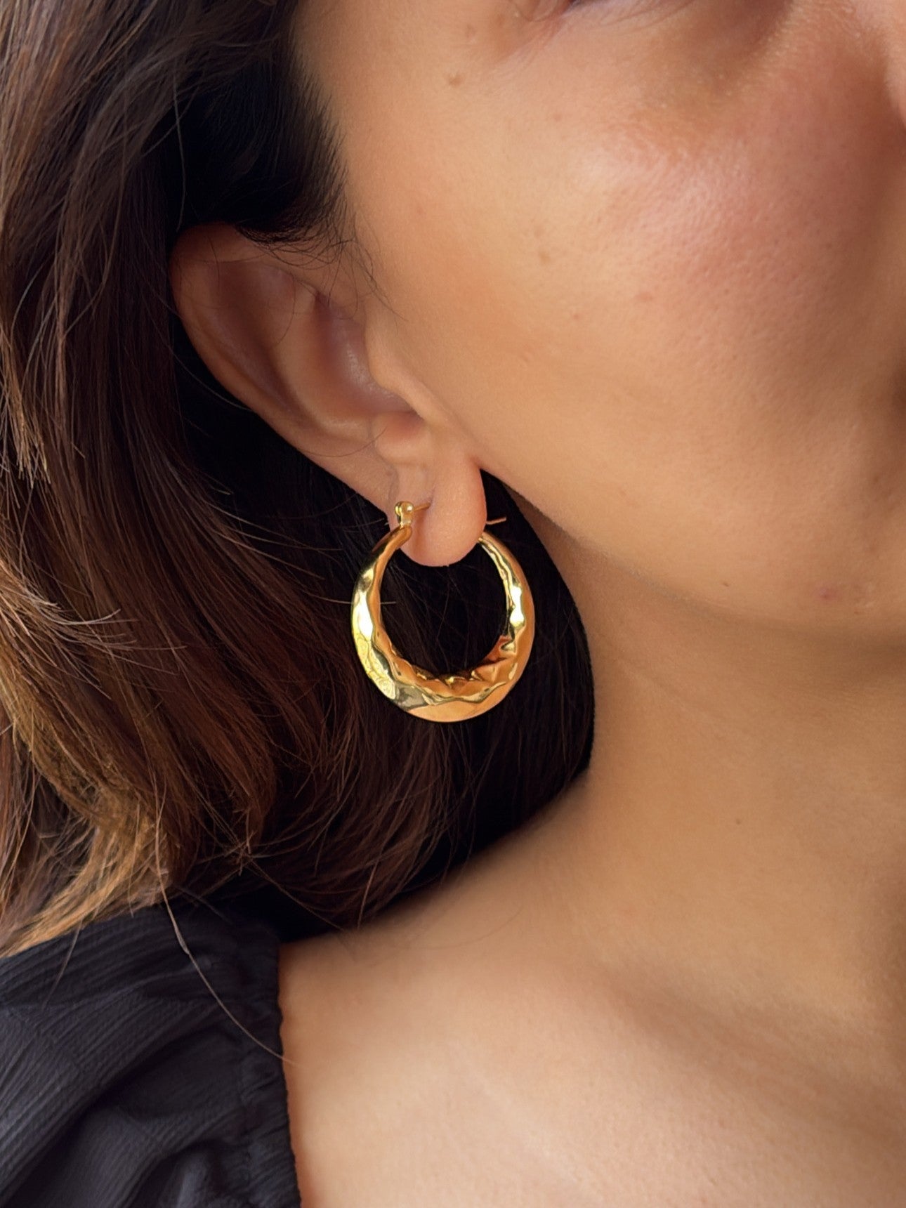 Expertly crafted with stainless steel and gold plating, our Luna Hoops offer a touch of elegance to any outfit. With their waterproof, anti-tarnish, and hypoallergenic properties, they are perfect for everyday wear.