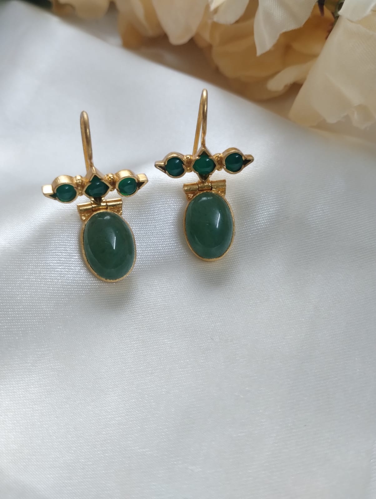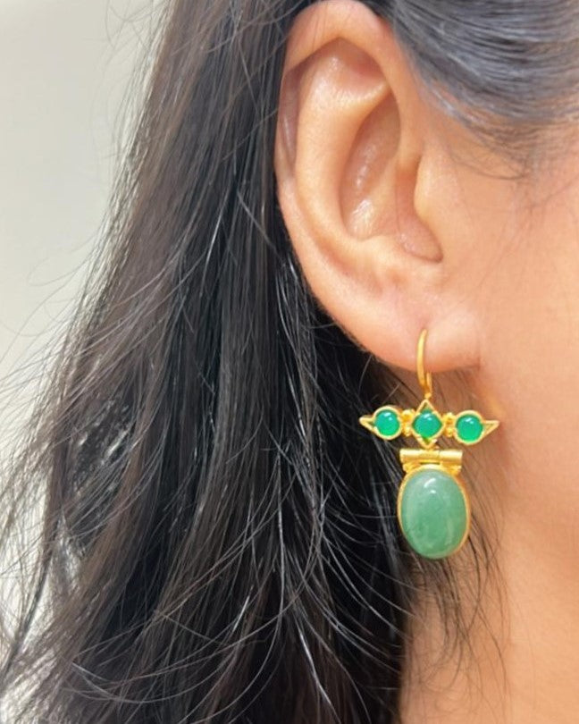 Handcrafted in 925 silver and with high-quality Green aventurine quartz and green onyx. These Maya earrings are both stylish and sophisticated, adding a touch of natural elegance to any outfit.
