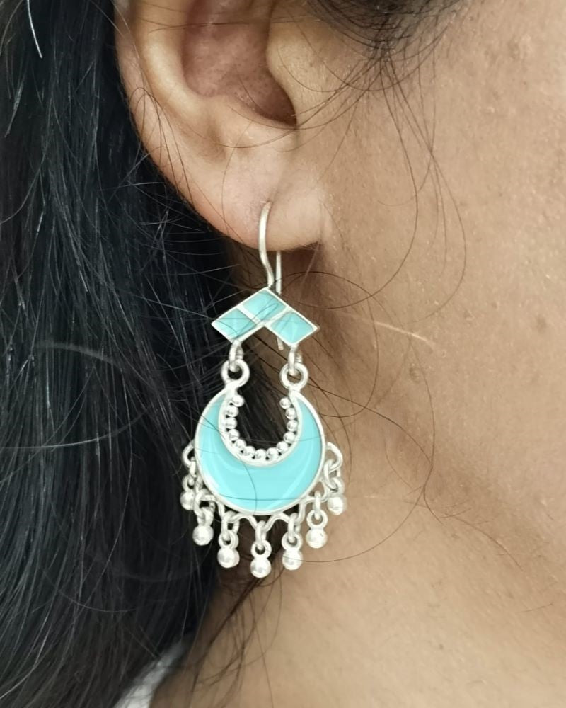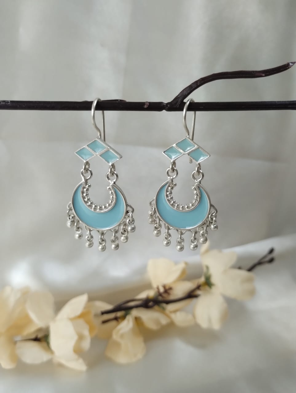 Add a touch of traditional elegance to any outfit with our Meera Meenakari Earrings in a stunning blue color & 925 silver. The intricate blue meenakari work showcases the rich cultural heritage and craftsmanship of India.