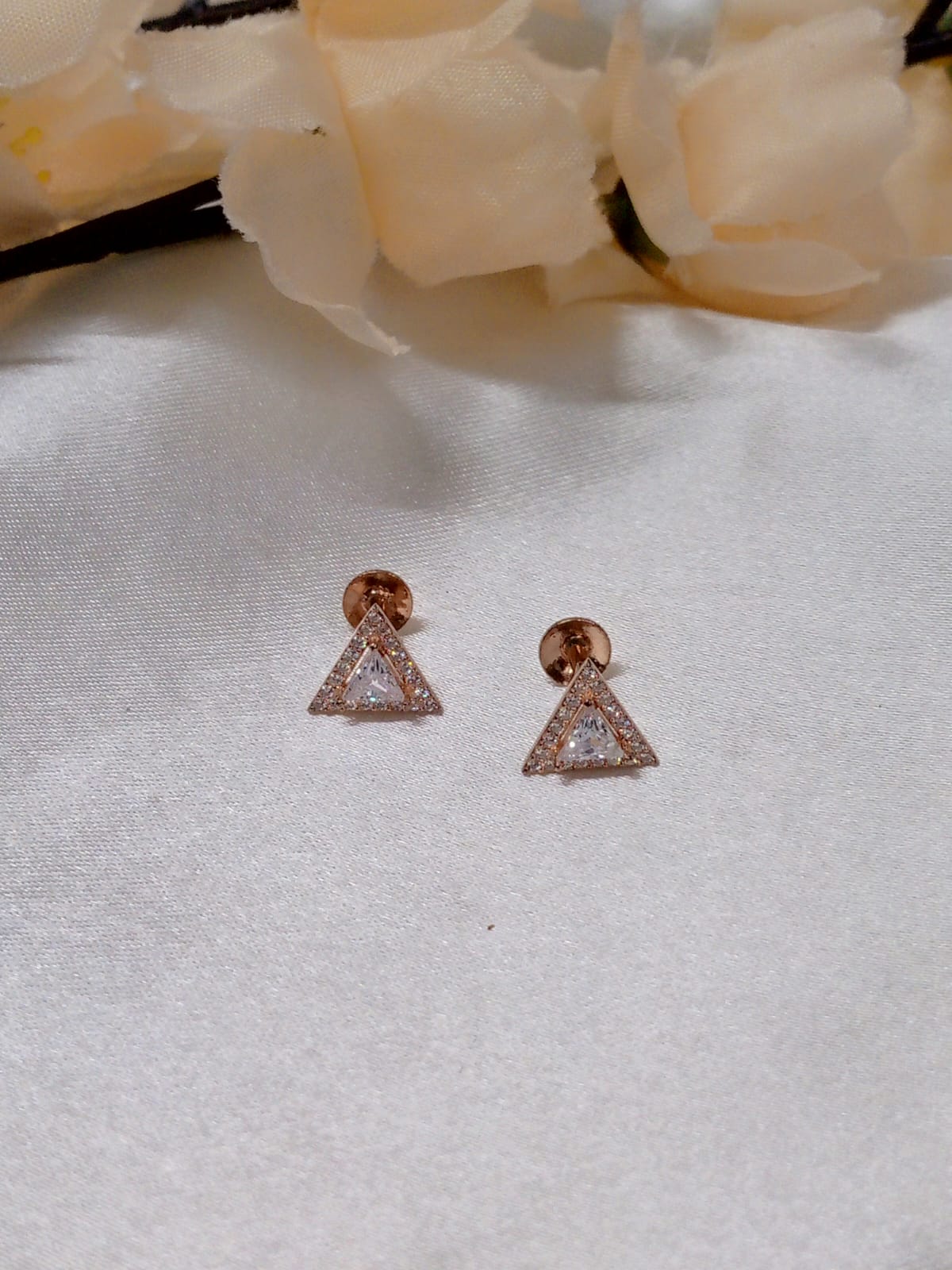 These Pyramid Earrings feature a delicate triangular design in stunning rose gold, accented with sparkling zircon stones. The unique south screw closure ensures a secure fit.