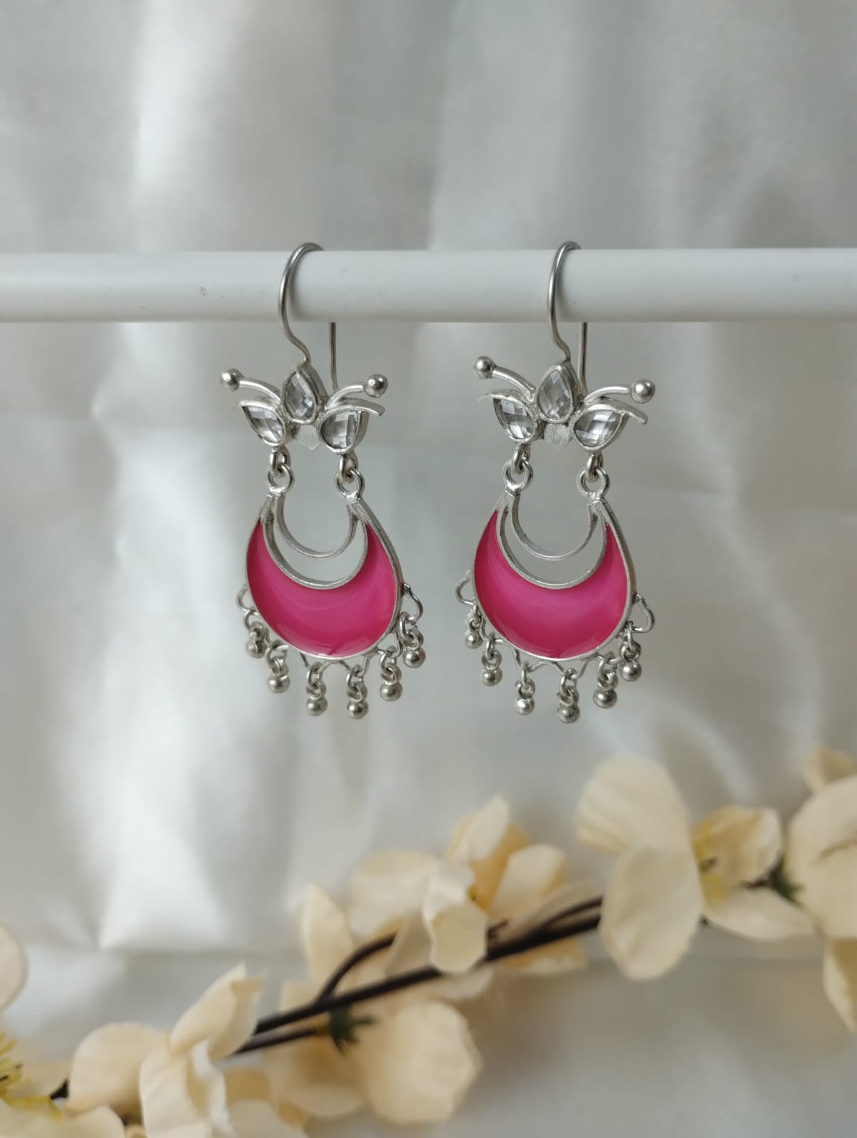Discover the perfect blend of traditional and contemporary with our Ratnakara - Meenakari Earrings. Made from 925 silver, these earrings feature intricate pink meenakari work and sparkling zircon stones.