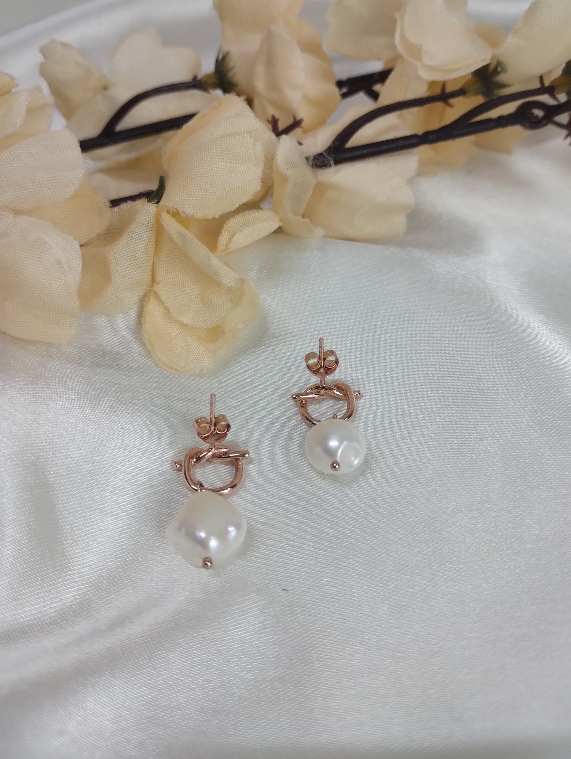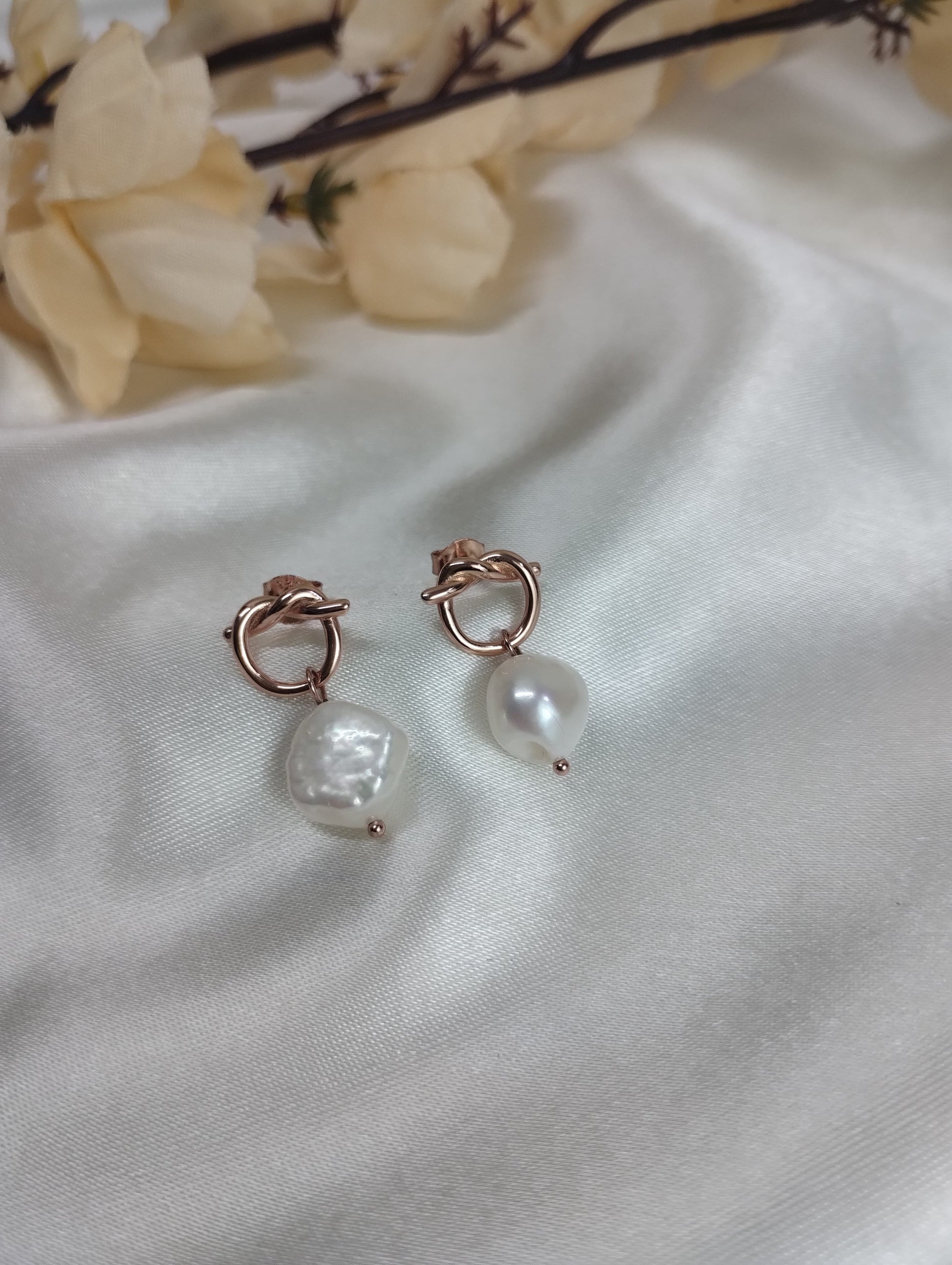 These elegant earrings are crafted with 925 silver and coated in rose gold, featuring stunning fresh water pearl drops.