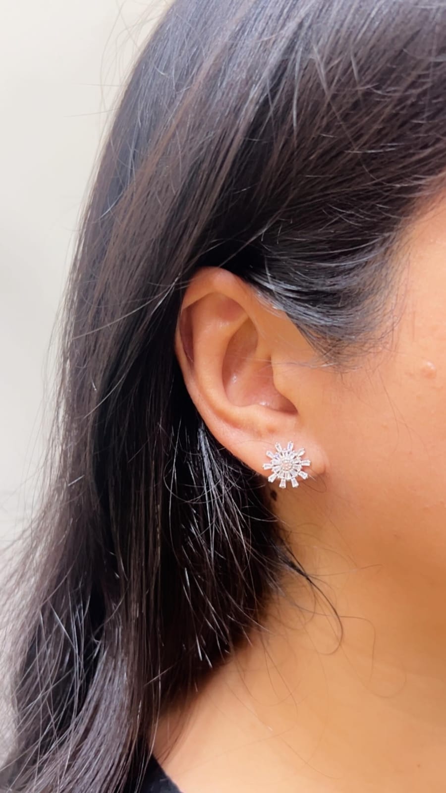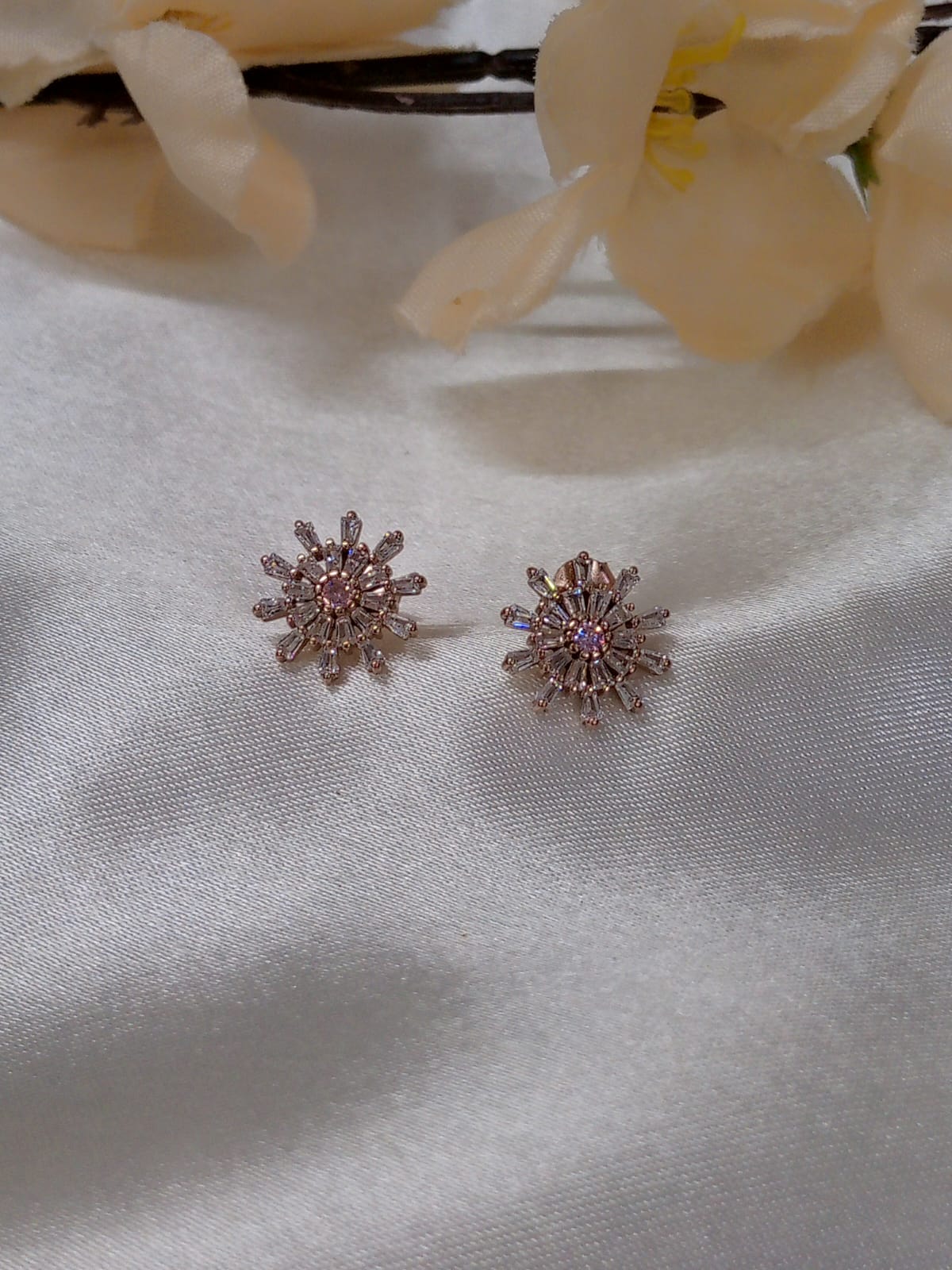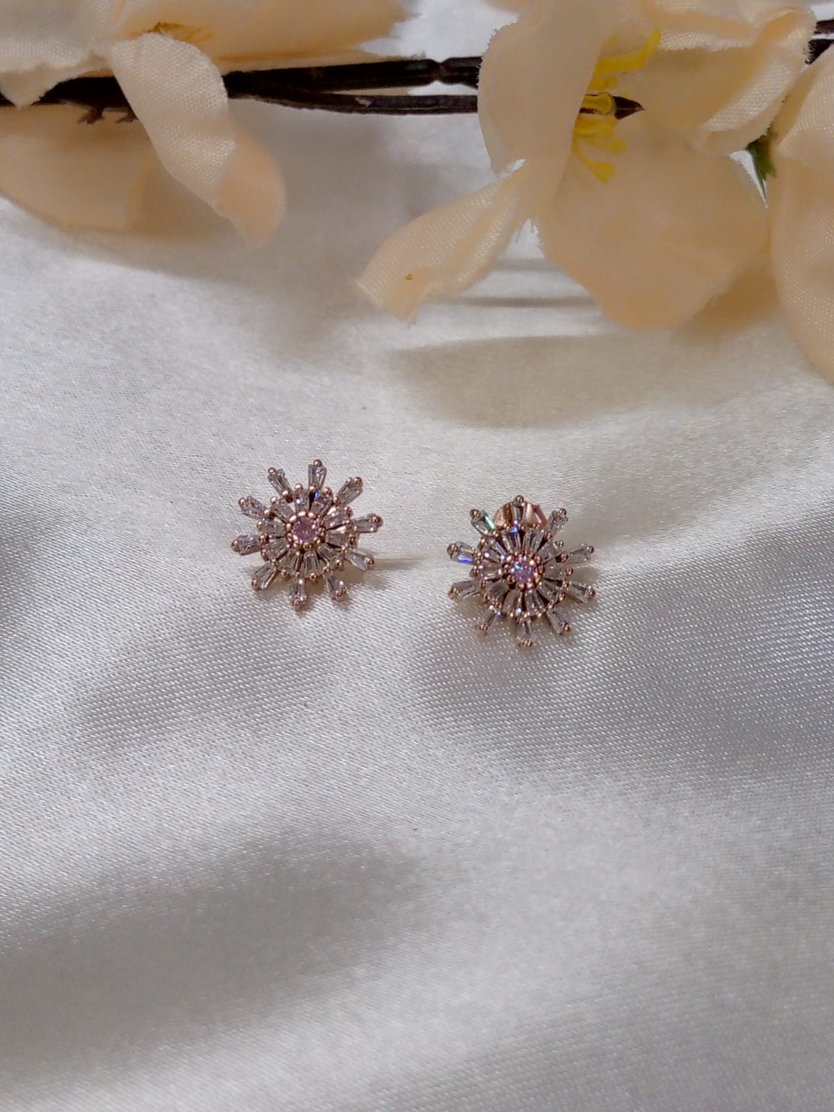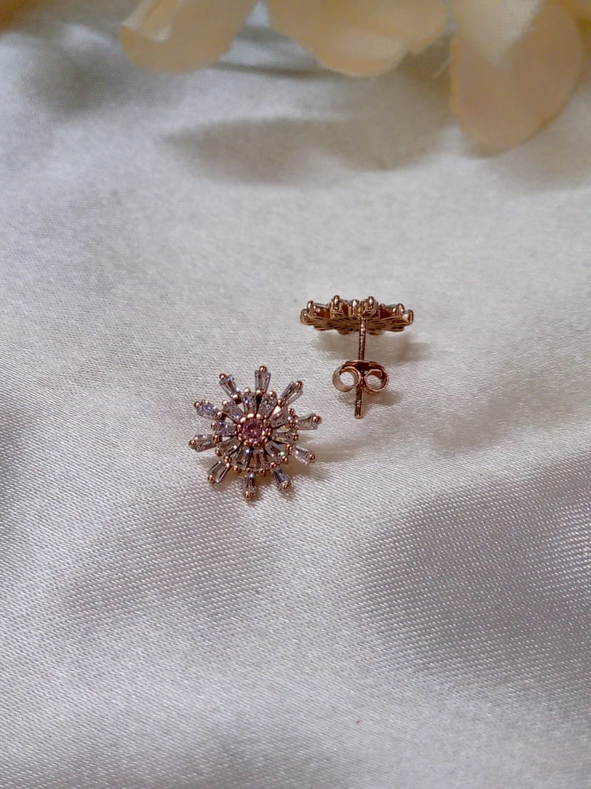 Made with 925 silver in rose gold, these earrings feature sparkling zircon stones and a stunning center pink stone.