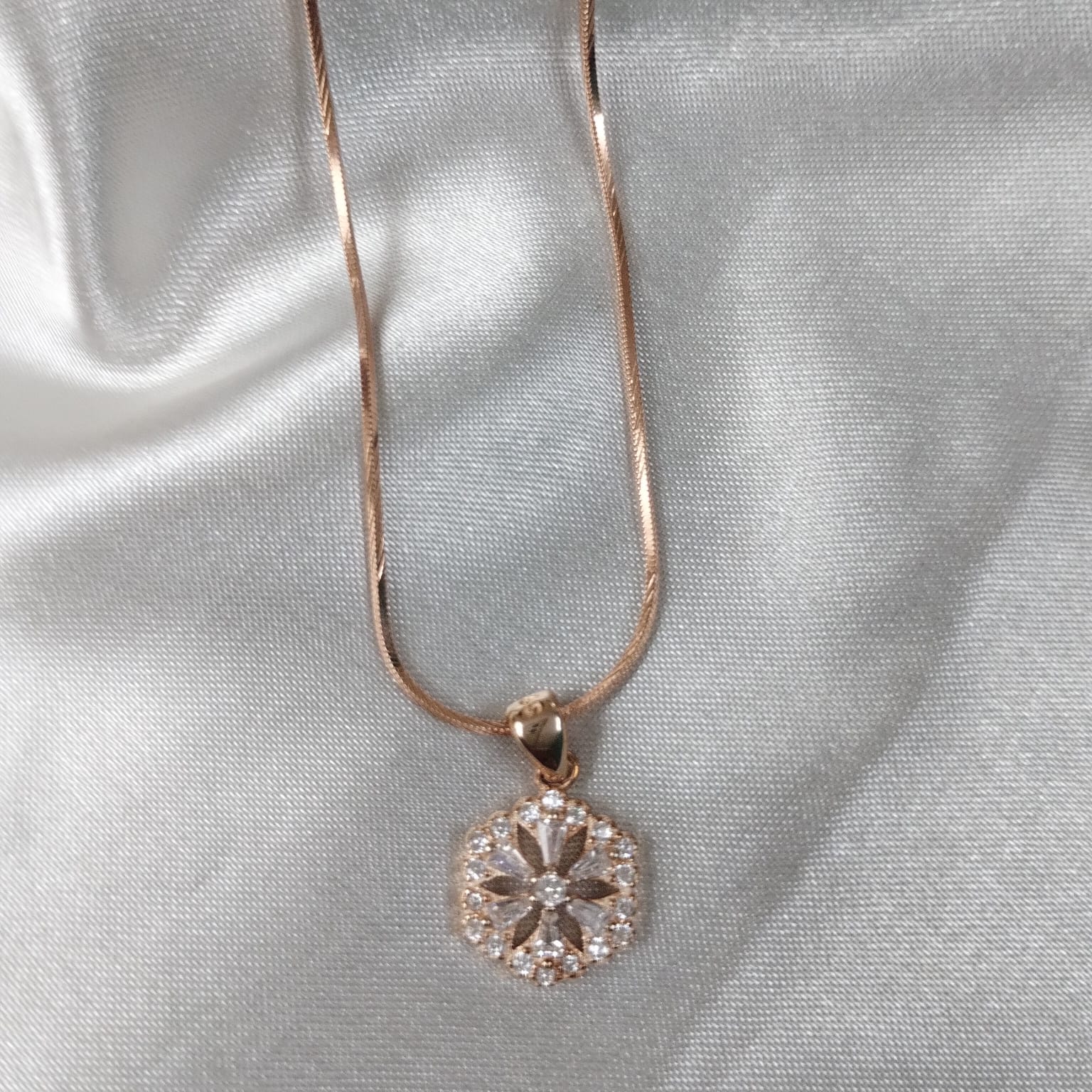This 925 silver pendant set features an elegant, hexagon shape and a luxurious rose gold plating.