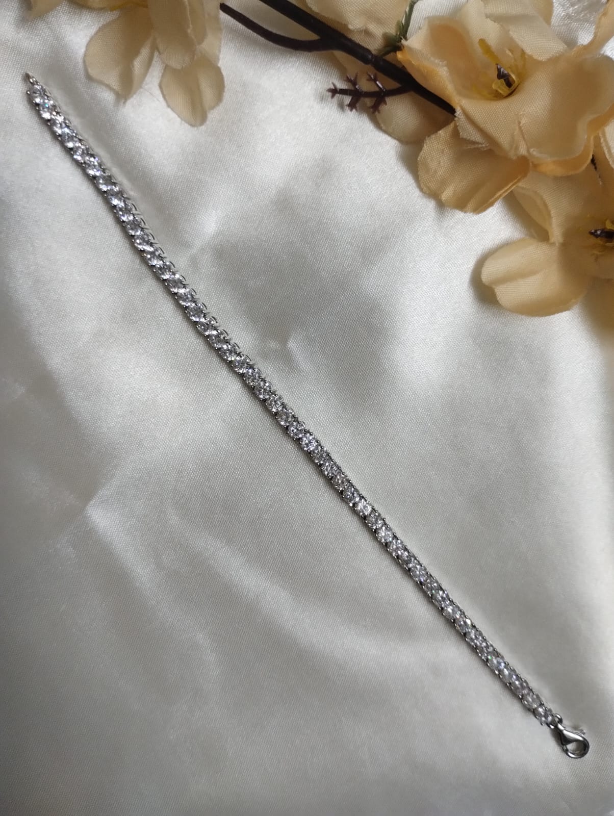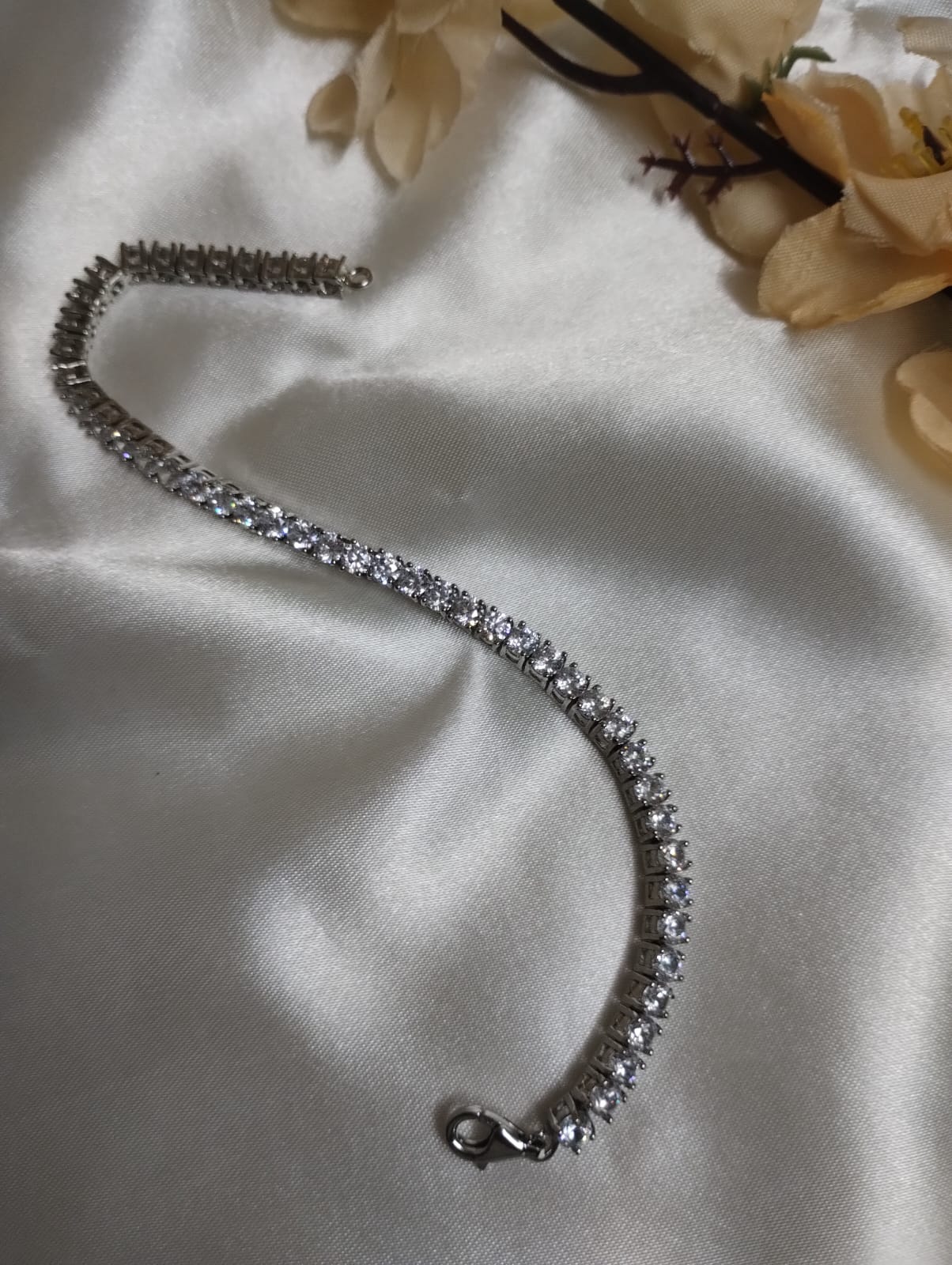 Add elegance to your look with our stunning silver tennis bracelet. This exquisite piece is adorned with premium sparkling zircon stones that shimmer in the light.