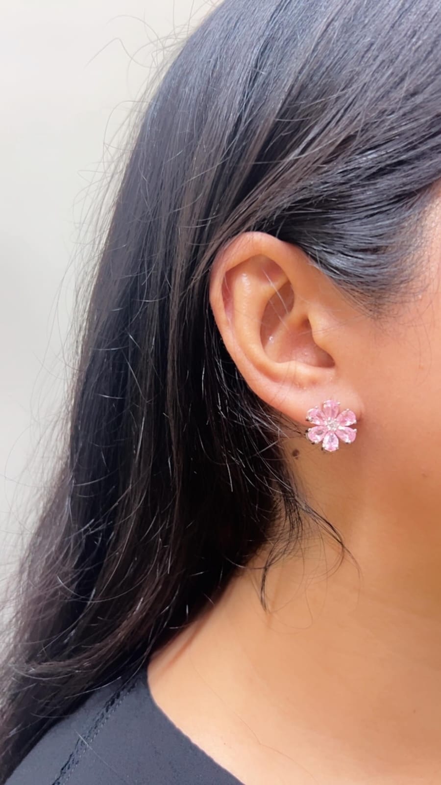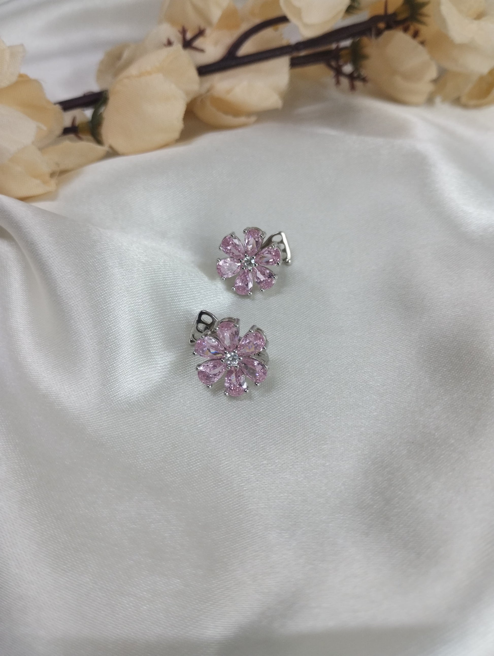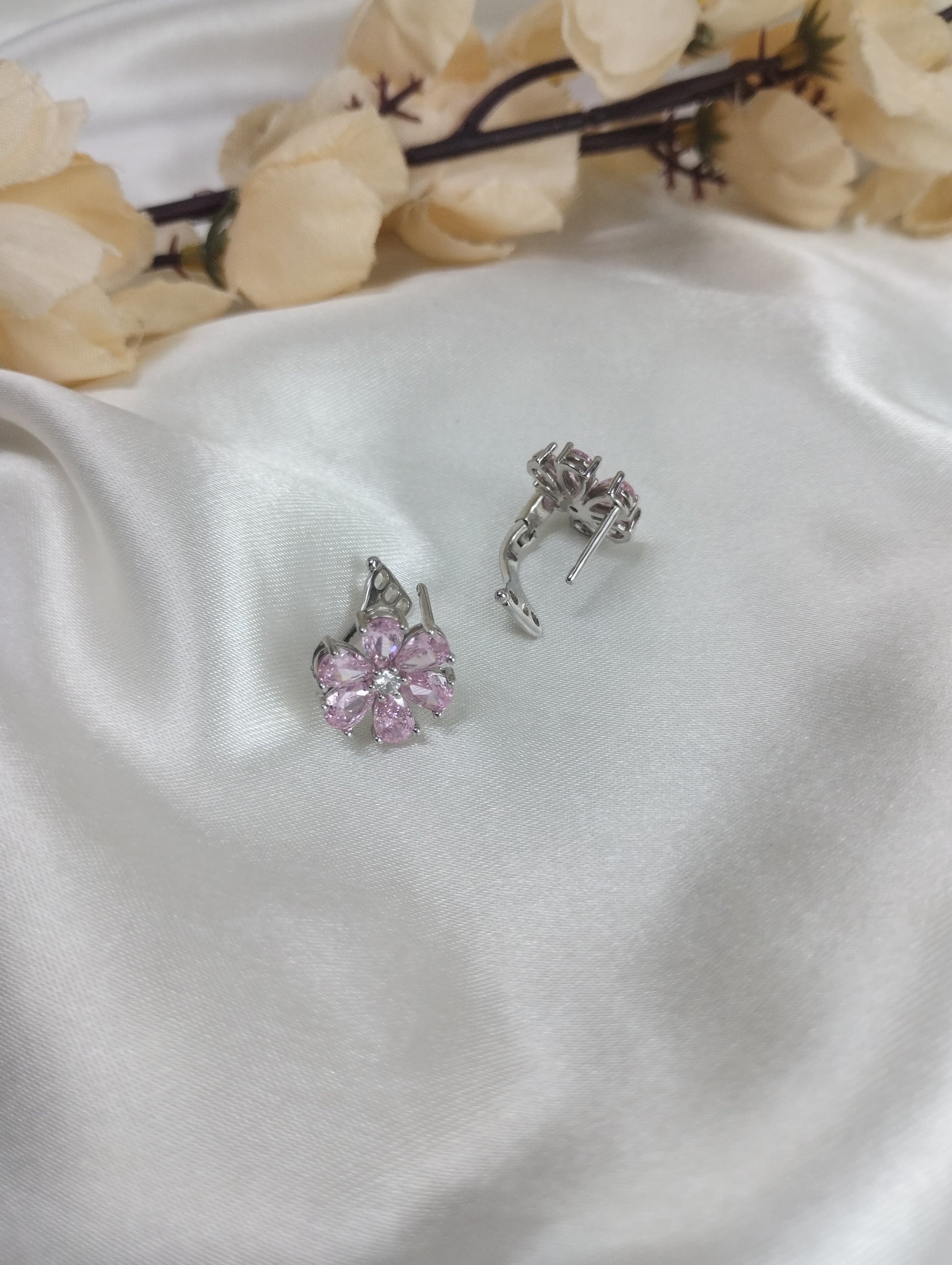 These 925 silver hoops feature a stunning sunflower design embellished with pink zirconia.