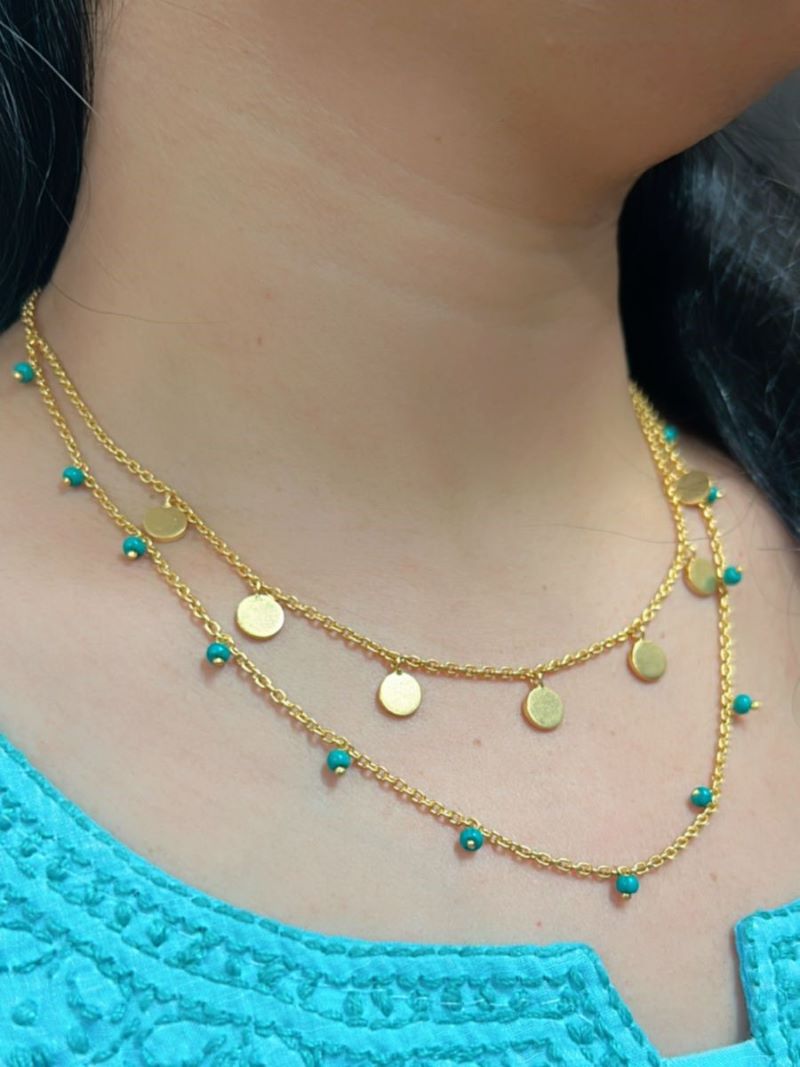 Handcrafted in luxurious 925 sterling silver and finished with stunning turquoise beads, the Tara Necklace is the perfect statement piece for any occasion.